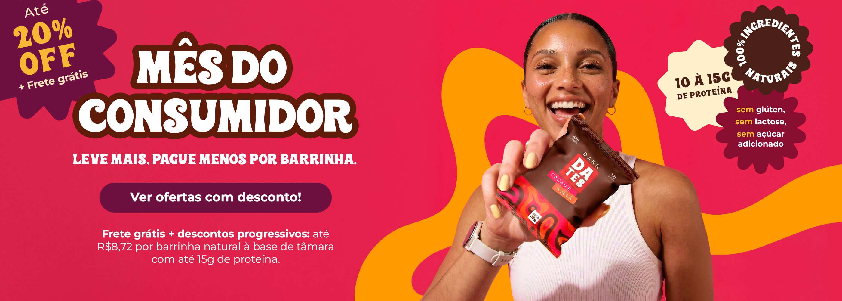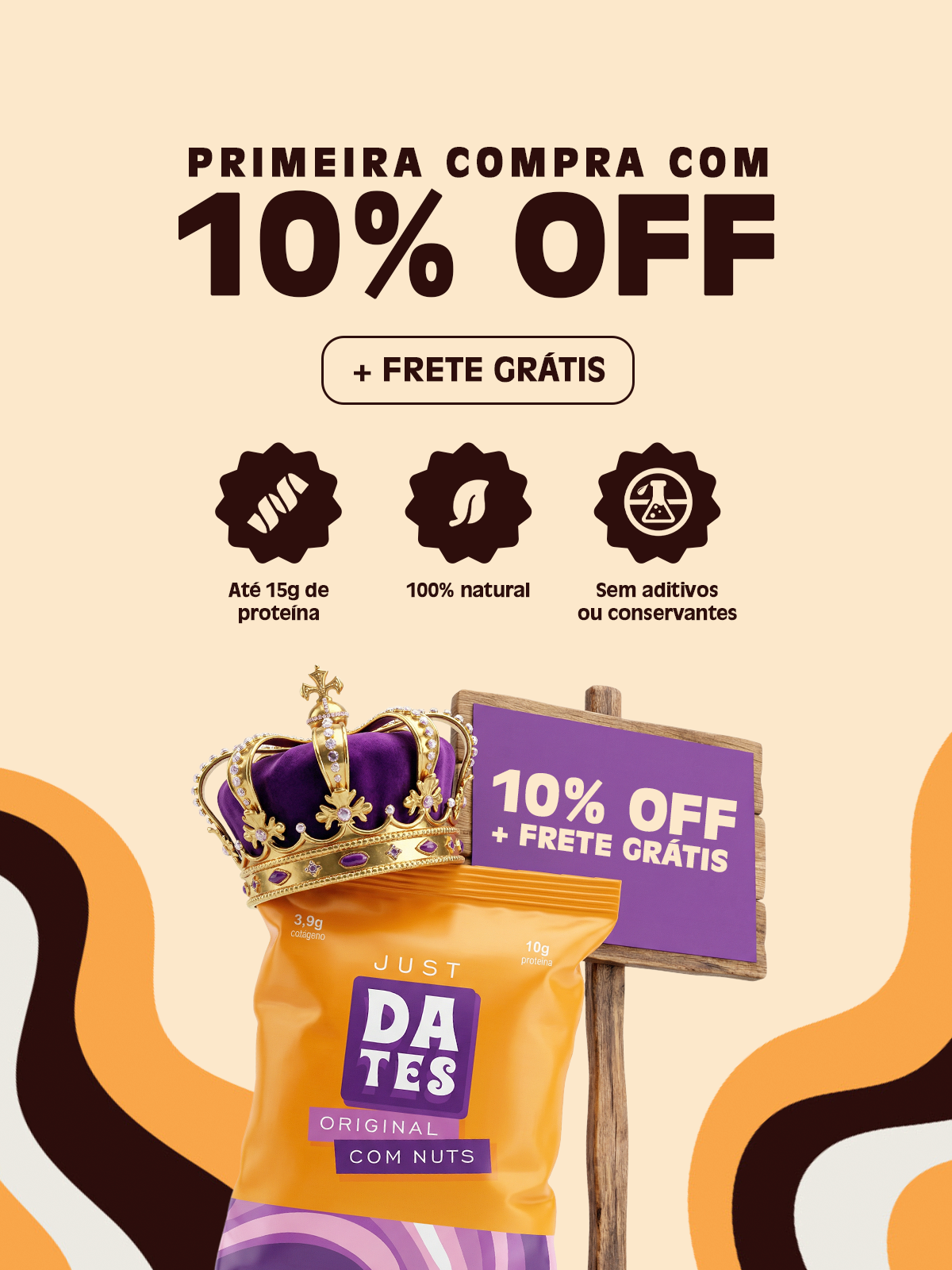 Não! Todos os nossos snacks são naturalmente doces graças às tâmaras, que são a principal base dos nossos produtos. Não usamos açúcar refinado, adoçantes artificiais ou qualquer ingrediente que não seja 100% natural. O sabor doce que você sente vem só da natureza mesmo.