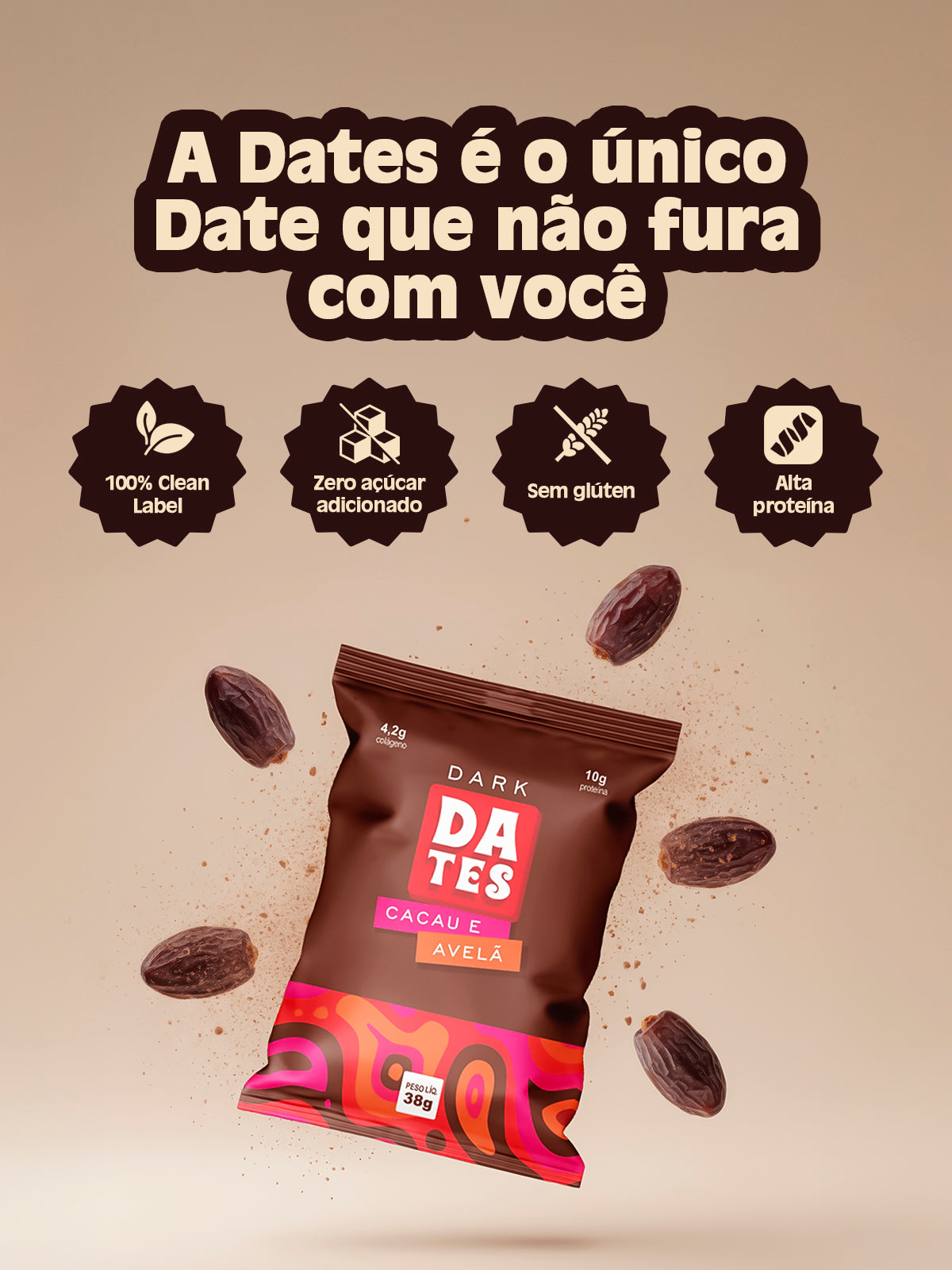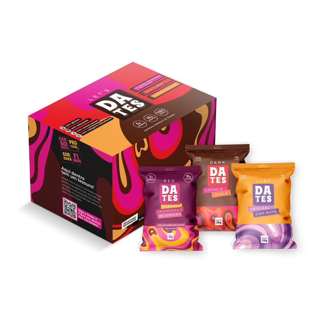 Não! Todos os nossos snacks são naturalmente doces graças às tâmaras, que são a principal base dos nossos produtos. Não usamos açúcar refinado, adoçantes artificiais ou qualquer ingrediente que não seja 100% natural. O sabor doce que você sente vem só da natureza mesmo.