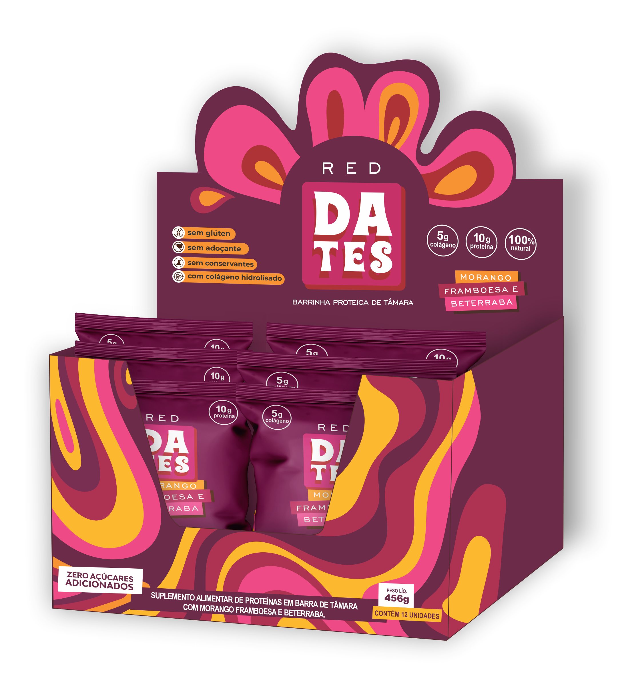 Cada display dos nossos snacks contém 12 unidades. Eles são embalados individualmente, perfeitos para você levar na bolsa, na lancheira ou ter sempre à mão quando bater aquela vontade de um lanche gostoso e saudável.